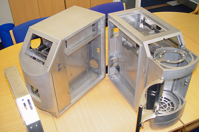 Ether designed in house using our advanced 3D CAD, or to as sub contract to customer’s drawings PEM Sheet Metal’s enclosures are used in many commercial, medical and military applications. We manufacture cases and cabinets in mild steel or aluminum with a variety of plating and or painted finishes. Stainless steel enclosures are becoming more common for medical and clean room applications and with our precision welding and ‘clean cut’ laser cutting technologies, these present no problems.